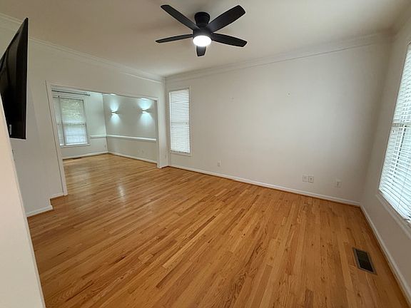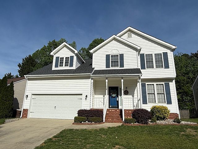 Marathon Property Solutions Presents: 5 Topridge Court, Greensboro, NC 27407: Gorgeous two story home in Adam's Farm featuring 4 bedrooms, 2 1/2 baths. Entry foyer, hardwoods/tile on main level, formal living and dining rooms, eat-in kitchen with window seats, granite countertops, two pantry closets, stainless appliances (gas range). Huge den with fireplace. Fenced back yard with deck and detached storage building. Powder room on main level. All bedrooms on second floor, carpet upstairs. Primary bedroom has full bath and walk in closet. Laundry closet in hall with Samsung washer/dryer included. (There are mounted flat screen TVs in several rooms that can remain for tenant use. Marathon cannot guarantee function and TVs will not be replaced during tenancy). Attached 2 car garage. Available now!