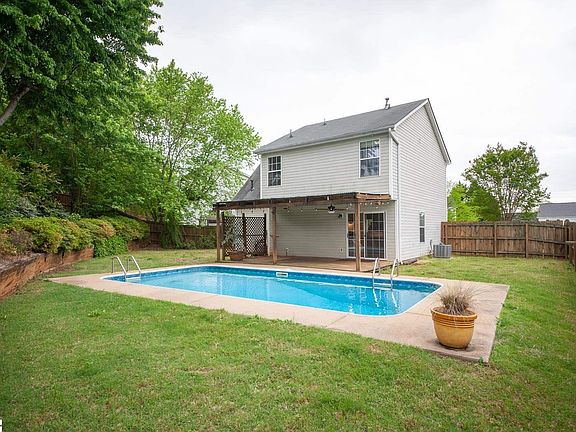 Check out this opportunity to get a great home loaded with extras in the ever popular and growing Greer area for just over $200k. Situated on a large cul-de-sac lot, this home features an in ground pool with a privacy wood fence and large covered deck space. The downstairs living area is an open concept with kitchen and gathering area combined and has laminate and tile flooring installed throughout. The kitchen also includes a stainless refrigerator, center island, bar seating, and eat in breakfast area overlooking the pool. Head upstairs where you will find 3 bedrooms, 2 full baths, plus a bonus room great for a rec space or home office. The master bedroom has vaulted ceiling, laminate flooring, walk in closet, and the private bathroom has been renovated and includes tile flooring and a tile walk in shower with dual shower heads and seamless glass door. Newer carpeting has been installed so you can just move right in. The location is great for award winning schools, business, or frequenting the great downtown Greer area.