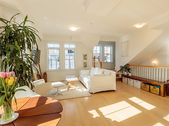 Sleek, light-filled contemporary end-unit townhouse built in 2013 featuring 2 bedrooms, office, 1.5 baths, garage parking, central air, private deck, blond maple floors, high ceilings, 2 storage areas. From the garage, there is direct access to the ground level with hall closet, home office, and mud room area across from the main entry off the front porch. On the second level is an open living/dining area with large windows, kitchen with stone counters and stainless steel appliances, 1/2 bath, in unit laundry, and door to deck. The top floor has 2 bedrooms with large closets and a full tiled bath with glass shower enclosure. Located on a side street but across from a rock climbing gym, brewery, and innovation hub. Walk to Union, Porter, and Harvard Sqs; Red Line and GLX T stops; CT2 and other buses; bike path; and many cafes, shops, hotels, restaurants.