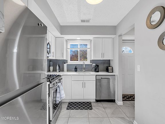 Light and airy updated end unit townhouse in Ramtown Manor. First floor boasts gracious living room, dining room with updated flooring, and fully renovated kitchen with Quartz countertops and stainless steel appliances in addition to a separate laundry room and modern half bathroom. Second floor includes 3 generous bedrooms all with ample closet space and renovated main bathroom. Sliding glass doors from the living room leads to an expansive open space and the home is close to walking trails and playground.