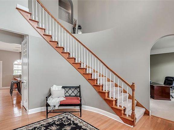 This stately 4 bedroom, 3.5 bath home in the desirable neighborhood of Maronda Farms is waiting for you to call HOME. Enter the grand foyer with curved staircase, gleaming hardwoods, and neutral paint! The recently updated kitchen boasts brand new granite countertops, new hardware, SS appliances with a 6 burner gas GE Monogram stove, and full-size refrigerator and full-size freezer perfect for the at-home chef. Sit and eat your meals at the island or eat in kitchen overlooking the gorgeous SALT WATER pool in the backyard. Adjacent to the kitchen is the oversized family room complete with gas fireplace, faux wooden blinds, and large picture windows. Entertaining is a breeze with the large dining directly next to the kitchen. Chair rail and large crown molding make this place stand out! Current owner is utilizing the living room as a den. A recreational kitchen, full bath, 2nd gas fireplace and a workout room complete the finished lower level. High ceilings and nine ft doors throughout.
