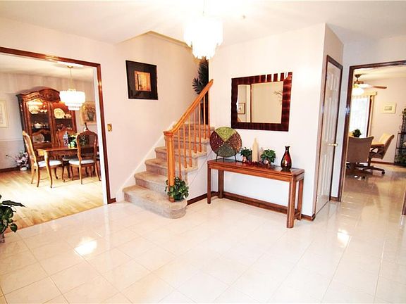 One of the most charming, well-maintained, squeaky clean homes reflecting tons of owner pride! Must See and not a drive by!! Sits majestically atop a hill in a sought-after neighborhood. Ample light throughout. Very roomy! Beautiful etched glass front doors flanked by double coat closets. Wide open foyer. 1 BR on main level adjoining a 1/2 bth that can be easily converted into a full bth.Kitch has newer granite counters,plenty of cabinets,side desk,island & a spacious breakfast area.Beautiful hardwood floors refinished in the living & dining rms in 2013.Mstr BR w/ 2 regular closets & a walk-in closet.Large 2nd flr BRs.Beautiful secluded backyard.Poured concrete basement w/ french drains.Spacious deck resurfaced in 2014.New seamless gutters & leaders,fascia board & soffits 2016.2 zone hi efficiency 3 ton AC units 2013.2 Lennox hi efficiency furnaces 2013.Garage doors 2008.Carpet 2013.2 Lennox central humidifiers 2017.Premium Vinyl siding 2003.