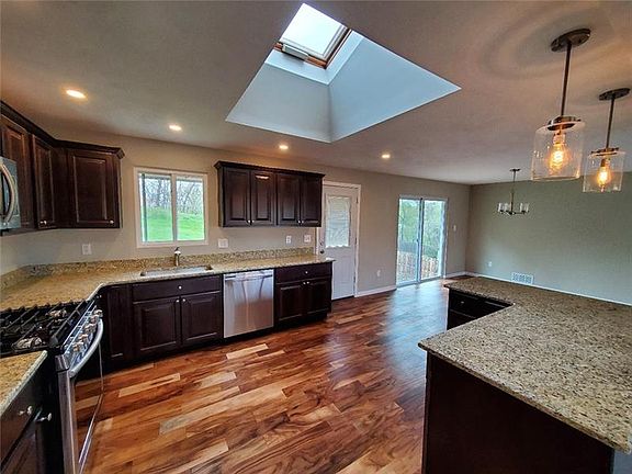 Immaculate Huge Brick Ranch Completely Updated 3 Bedroom 2.5 Bathroom with 4th Bedroom or Office Located on a Private Drive with Amazing Access to Pittsburgh and Turnpike! Beautiful Master Suite with Full Bath and Tons of Closet Space! Gorgeous New Kitchen with Skylight, Granite Countertops, Stainless Steel Samsung Appliances & Island! Pristine Renovated Baths w/Ceramic Tile/Shower/Tub, New Vanities, Toilets. New Scraped Acacia Hardwood Floors in Kitchen, Dining Room & Foyer. NEW Roof! ALL New Windows! NEW Driveway! NEW Asphalt Driveway! New Furnace & AC! New Electric Panel & Hot Water Tank. New Seamless Gutters. Huge Finished Lower Level with Stone Fireplace, Separate Laundry Room and Bedroom/Office. All New Exterior & Interior Doors! Two Car Garage with Automatic Opener. Dining Room Leading to a 14x10 Patio. All New Trim & Baseboards. Fresh Paint and NEW Carpet Throughout! Huge Backyard and New Versa-Lok Wall.