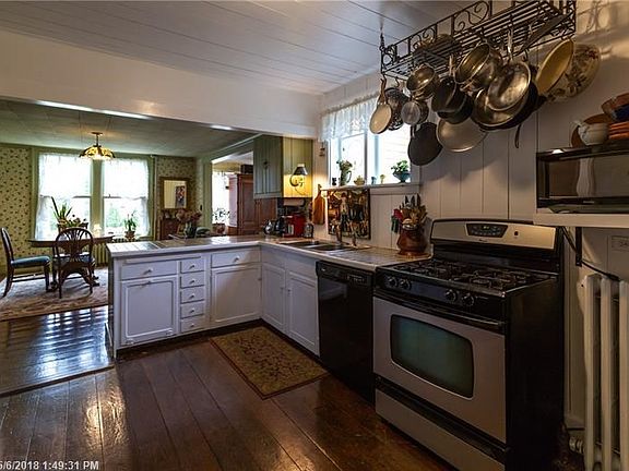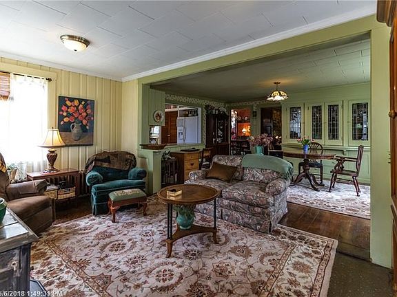 Stunning Greek Revival with 5 bedrooms and 3 baths on 3.7 acres features coffered ceilings, hardwood floors, original custom woodwork, built-ins, stained glass, four fireplaces, orchestra room, card room, claw foot tub, wrap-around porch, in-ground pool, attached garage and large shed. Historically significant, this now private home was formerly the Carrabassett Inn with 200 feet of owned frontage on the Carrabassett River. Commercial possibilities!