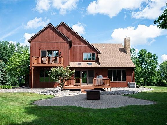 Fabulous Contemporary set 250' back on Gorgeous 5acre Parklike Private Lot! Welcoming Marble Foyer opens to DinRm w/hardwd flr which leads to the Atrium w/Ceramic flr &Skylites! Oak Kitchen w/Granite Counters, Tile Backsplash, newer appliances & Bar area with 1 step down to Family Rm. Living Rm w/gas fireplace insert. Both Liv Areas overlook the Lush Rear Yard! Convenient 1st Flr Bedrm, updated Half Bath & Laundry Rm w/appli. 2 Story Mstr Ste w/new Whirlpool Tub, Granite Counter, Tile Shower &Flr! Spiral Staircase to Loft! Atrium Dr to Quaint Balcony! Plus 2 Generous size Bedrms &Updated Main Bath w/Granite Counter, Tile Tub Walls & Flr! Great Basement Rec Rm, Rear Yard Deck &Stone Patio w/Fire Pit! Huge 12X28 Outbldg.