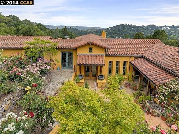 A very special knoll setting of fabulous design appeal this beautifully styled custom built home blends "Old World" charm with modern amenities of high quality craftsmanship. Offering a setting of unmatched privacy, incredible tranquility, spectacular sunset western views in one of Orinda's significant enclaves of Estate homes off Miner Road.The architecturally designed home of approximately 3625 square feet offers open and oversized living spaces all with high ceilings, bright rooms with an abundance of windows creating a sun splashed interior. The comfortable yet elegant principle rooms are exquisite with lovely hardwood floors, wood trims, granite and stone surfaces, a tapestry of color, textures for luxury, warmth and high style. Truly a home for entertaining.This exciting property boasts 3 bedrooms, 3.5 baths in the main home (an oversized room above the garage contains space as a 4th bedroom, office, recreation/media center as well as the 4th bathroom). A gracious deluxe master suite with spa-type bathis ideally set for privacy and tranquility with vista verandas, luxury finishes. A guest bedroom wing encompasses one side of the home, each suite with full modern baths. All principle rooms flow easily from the well designed state-of-the-art Chef's kitchen to the formal living areas perfectly set for entertaining large or small gatherings. Every space effortlessly accesses the outdoors easily through patio doors illuminating the light-emitting glow all day.The natural and lush landscaping provides a harmonious balance of distinguished indoor and outdoor living enjoyment discretely nestled so peacefully on a .92 acre site. Artisan craftsmanship can be seen from the lovely stucco surfaces, classic tile roof and dual paned windows. Sandstone patios, grassy lawns and rose gardens (cared for my the owners with great care and love) provide the essence of luxury, glamour, serenity and romance of beauty spanning sunrise to sunset.