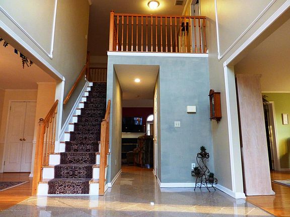 Opportunity knocks! The perfect home for entertaining. Well maintained center hall Colonial on 1.97 manicured acres featuring 4 bedrooms, 2.5 baths, 2 car side entry garage, finished basement, in-ground pool, hot tub, shed and more. Gorgeous leaded glass entry door opens to two-story foyer w/granite flooring. Beautiful remodeled kitchen w/granite counters, ceramic floor, S/S appliances. Two-story faulted family room w/wood burning FP; beautiful remodeled bathrooms and hardwood floors throughout. Country club backyard w/in-ground pool, stamped concrete patio, hot tub and arbor. A partially finished basement makes this the perfect home for a growing family.