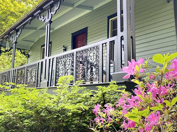 This charming Victorian cottage in the heart of Rhinecliff is now available as a delightful rental from August 15th until May 2024. Nestled in a scenic hamlet, this cottage boasts a striking exterior adorned with intricate details, featuring a welcoming porch where you can unwind with a glass of lemonade or simply enjoy the natural beauty of the shady garden. Upon entering the cottage, you'll be enchanted by its warm and inviting ambiance. The house comes fully furnished, allowing you to settle in effortlessly and make yourself at home. The main level features an open floor plan, creating a seamless flow between the kitchen, living room, and dining area. The kitchen is fully equipped with everything you need to prepare a delicious meal, and there is even a cozy wood stove for chilly fall and winter nights. On the second floor you'll find a comfortable bedroom, offering a peaceful sanctuary for restful nights. Adjacent to the bedroom is a study, thoughtfully designed for work or relaxation, complete with an additional bed for extra flexibility and convenience. The lower walk out level features an independent studio, perfect for guests or extended family. This suite has a kitchenette, a full bathroom with washer and dryer and its own entrance. The house offers a perfect blend of classic charm and modern comforts in a location that can't be beat. Walk to the Epicurean for your morning coffee and gourmet grocery staples, or to the newly opened Kips Tavern for dinner with a view of the Hudson. For quick New York City trips walk to the Amtrak train station which will get you to Penn station in less than 2 hours. And the bustling village of Rhinebeck with its many restaurants, indie movie theater, and Sunday farmers market is only 5 mins by car. This cottage is perfect for those seeking a peaceful and picturesque Hudson Valley home base.