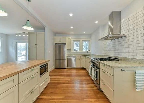 This very adorable home has had a terrific face lift. New roof, new windows throughout, a newly designed chef's kitchen that is fantastic. Metropolitan cabinets, Capital gas range with a Zephyr hood, Fisher & Paykel refrigerator and a maple butcher block island. Hardwood floors have all been refinished. The first floor is bright and airy, perfect for a young family. French doors lead out to a spacious deck. A heated sunroom and a lovely welcoming fireplaced living room. 3 good size bedrooms, updated baths and the master bedroom with walk in closet. There is a 2 car garage in need of cosmetics and landscaping is needed. Some finishing touches will make this a perfect home. Utilities: for Gas Range, for Gas Oven Sewer: Public Sewer Water Source: Public Electric: Circuit Breakers Heating & Cooling Has Heating Has Cooling Heating: Hot Water, Natural Gas, Electric Cooling: Window Unit(s)
