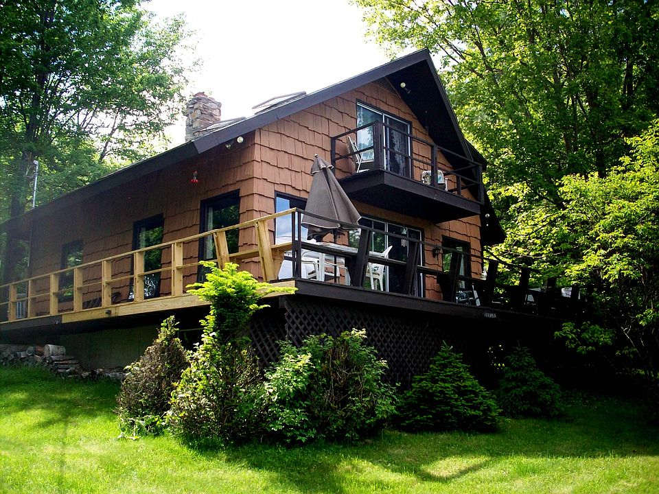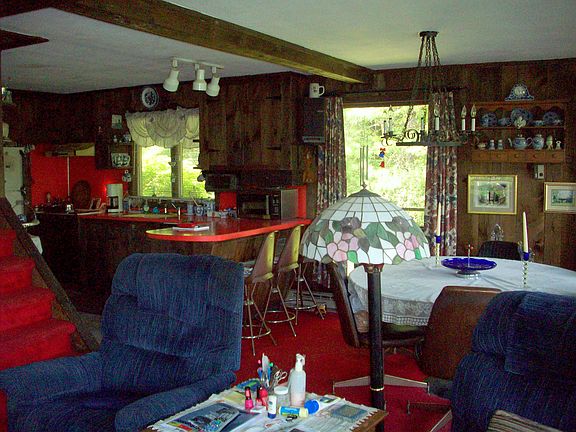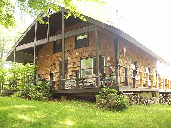Prime location. Short walk to the beach, lakes, in-ground pool and more. Great year round or vacation home. Hand-hewn exterior shingles, wrap around deck with a portion of it covered for the hot days. Interior rustic barn board walls in some rooms, Over-sized windows and sliders add a great deal of natural light in the Living Room and Dining Area. Cozy up to the stone fireplace in the Living Room. Beam ceiling in the Living room and Dining Area. Kitchen cabinets were built on site. There is a first floor bedroom and bathroom, 2nd floor offers a large master bedroom with slider to balcony and skylights, built in's, 3rd bedroom is spacious L shape with room for a double or queen size bed and a twin bed. There is a wood stove in lower level to help heat the house or electric baseboard heat which is a nice alternative to oil or propane. Two car garage which is insulated and offers additional storage. No Association Fees, but there are amenities available with Mountain Lakes. Winter views.