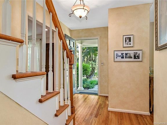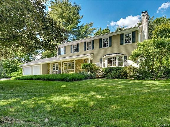 Beautifully updated, immaculate and lovingly maintained North Stamford Colonial sits graciously on a professionally landscaped level acre in sought after cul-de-sac neighborhood. Generous sized rooms, abundant windows, handsome hardwood floors and the perfect floor plan for living and entertaining are most impressive in this 4 bedroom, 3.5 bath home. Features include sun filled formal living room with fireplace, formal dining room, family room flooded with natural light, custom built-ins and French doors leading to patio and expansive deck. Be wowed in the spectacular chef's kitchen outfitted with custom cabinetry, granite counters, large center island with prep sink, stainless steel appliances, and breakfast nook overlooking private back yard. Bonus room off kitchen can be used as office/playroom/gym. Huge Master bedroom with Palladian windows, cathedral ceiling, private balcony, huge walk-in closet, 2 additional closets and Master bathroom featuring jacuzzi tub, heated floor, double vanity and shower make for a a special retreat all it's own Three additional well proportioned bedrooms (one with it's own ensuite bathroom, and another full bath along with laundry room complete upper level. Extra features include large lower level playroom, storage room,c/a, city water, new furnace, new 70 gallon hot water heater, new roof, new siding with stone front, security system, & custom Sportcourt, Convenient to Merritt Parkway & shopping, come be merry at 5 Very Merry Road