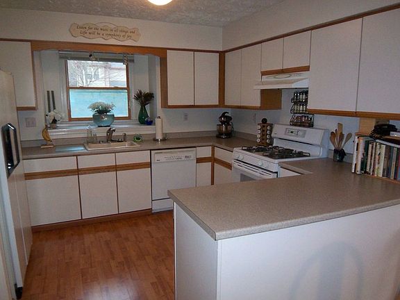 New Kitchen counter tops and under counter sink. Excellent condition and ready to move in. LOW MONTHLY FEE ONLY $150 covers snow removal and landscaping of common areas. Really large living room with fireplace and drinks counter and mini fridge. French doors to patio leading into large private rear yard area. Large eat-in kitchen with laundry adjacent. Both bedrooms are very good size - one having its own full bath and another full bath on landing serves 2nd bedroom. Recent updates include windows, washer/ dryer and 2015 boiler. This recent natural gas boiler and tankless water heater help keep fuel costs low. Lots and lots of closet space help make up for no basement. Low monthly fee of only $150 covers snow removal and landscaping of common areas. Owner looks after their own driveway and yard at rear.