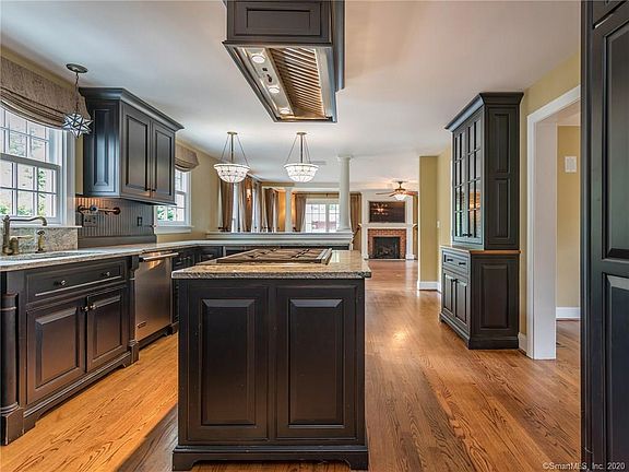 Situated on private, corner lot in Harwinton's historic district, this impeccable cape was extensively renovated by the current owner to the highest taste and standards. Kitchen has granite countertops, Wolf and Sub-zero appliances, built-ins and breakfast bar. Spacious living room, wood burning fireplace, french doors to outdoor entertaining space and grill. Formal dining room. Mudroom has plenty of closet space and storage, wet bar and drink fridge, half bath and laundry. Large master suite boasts remodeled bathroom with walk in shower, large closets and extra room to be office or nursery. Two additional bedrooms on upper level. Open floorpan, custom millwork and hardwood floors throughout. Fully finished basement with large entertaining space and full bath. Light, bright south facing windows look over heated POOL. Professional landscaping and drainage. Updated mechanicals, central air, full security system. Walk to nearby tennis courts! An extraordinary amount of effort, planning and skill went into renovating this LOVELY residence. Move in ready for SUMMER.