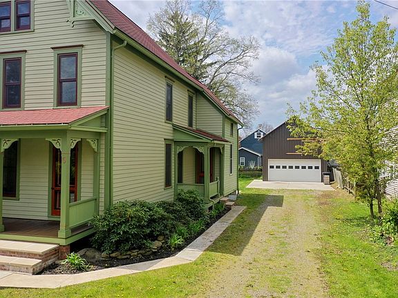 Village of Hammondsport-Circa 1886 lovingly restored Folk Victorian Home- 3 bedrooms, 2 full baths. Kitchen with granite counter tops and Vermont Slate Tile floor. Insulated 3 Season sun room that potentially could be converted to year-round. Living and dining rooms with new white oak flooring. Bathroom and laundry on the main floor. Second floor has new nylon carpeting, a master bedroom with 2 additional bedrooms. Full walk-up attic. All wiring and plumbing replaced including the garage/barn. All newer windows. 50yr/lifetime roof shingles. Original siding replaced with hardiplank with insulation barrier. Exterior and interior trim has been heat-gunned, sanded and repainted. Garage/barn structurally reinforced with new footers and support beams. Also new steel roof and siding. Everything has been done with exceptional detail. Just a short walk to Village Square and Keuka Lake.