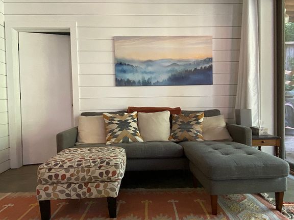 This lower level apartment is modern and bright with high ceilings and abundant in natural light. The space walks out to a nice green yard surrounded by trees with a small stream in the woods behind the house, and the yard is full of birdsong. The kitchen has stainless steel appliances and the unit has its own washer and dryer. One bedroom has a queen bed and the other has a daybed with trundle. The unit is furnished but the owners are open to exploring removing some of the furniture. The unit has a smart TV. The property is walkable to local businesses such as City bakery, the Chop Shop, Taco Temple, Jetty Rae's Oyster House, Pulp and Sprout Juice bar, Liberty Coffee, and Asheville Yoga Center. Also Trader Joes, Whole Foods and Harris Teeter are just a few blocks away. The backyard space is shared with the homeowners and their children will be playing out there sometimes. No smoking or use of scented candles or incense due to owner allergies. Unit has power, internet, water, and trash and recycling set up but fees will be split with owner. Parking is available on the street in front of the house.