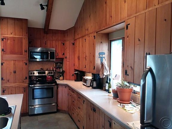 Enjoy the peaceful atmosphere Spring Creek provides from the patio as it winds through your backyard on 2.4 acres. The property features large mature trees, offering a sheltered setting for the rustic 3 bedroom, 2 bath home. The main floor showcases an open concept floor plan, with the kitchen/living/and dining rooms connected, with the opportunity to spill out onto the back patio for summer barbecues. The brick fireplace is perfect for gathering around on the cold winter nights. The upstairs balcony is open to below and leads to two additional bedrooms and a full bath. Enjoy nearby recreational activities such as Eureka Reservoir, Teton Pass Ski Area, trails along the eastern front of the Rockies with access into Bob Marshall Wilderness, and a quick drive up Highway 89 into Glacier National Park.