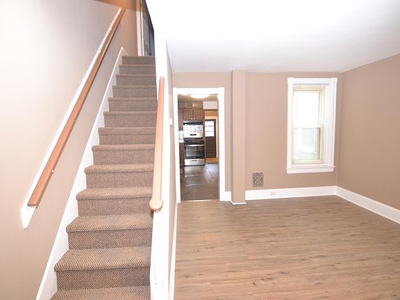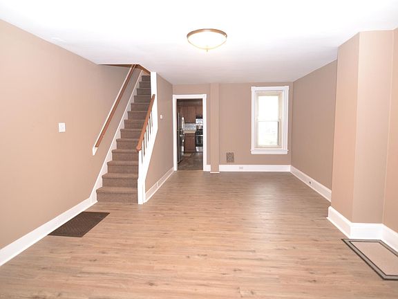 OPEN HOUSE SAT 10/25 2p-3p. Beautifully rehabbed top to bottom 3 BED and 1.5 BATH. New floors, fresh paint, remodeled bathrooms, updated kitchen. Stainless Steel appliances including a refrigerator and gas stove. New Luxury Vinyl Plank flooring throughout this home. Large living room & dining room. Eat in kitchen with ample counter top space. 1st floor laundry room with washer/dryer hook ups and half bathroom. 2nd floor has remodeled bathroom with full modern tub, 3 bedrooms. Full basement for storage, front porch and fenced rear yard.