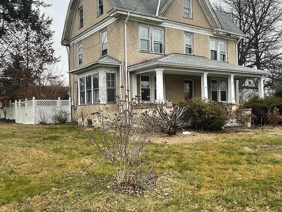 Firstly, before I tell you about this great home for sale, it should be noted that it is being sold in "as is" condition. It does need some significant work to the exterior and bathrooms but otherwise the home is a great shout out to the good old days of statement homes and while the heater may be older, this home is toasty warm, so it is working well. This grand old lady of yesteryear reportedly a Sears Roebuck Kit house was built in 1920 and as served her former occupants well. She is now ready for a remodel, needs some good TLC but has great bones. The home located in the quaint borough of Hulmeville sits on a spacious corner lot on a very quiet street with ample space around it. The corner lot is 12,120 square feet or just over one 1/4 acre. The house is composed of 4 bedrooms, 2 bathrooms although the one on the main floor, will full in function is very small and would more identify as a 1/2 bath in size, it's located off of the main floor laundry room. So starting at the front entry up steps onto front porch you enter the home into the foyer and center hall. The most apparent feature upon entering is the magnificent woodwork all stained woodwork presumed to be Chestnut , doors, the frames, the baseboards and the stair bannisters, all hark back to the good old days when this fine home was in her prime. The home has beautiful hard wood floors throughout all the way to the walk up attic on the third floor, the main floor and upper floors are in remarkably good condition as they were covered by carpeting for many years. The Foyer is flanked on either side by the generous sized Living Room/Parlor on the Left and the Dining Room on the Right with the stairs to the upper level straight ahead with a hall closet next to it. The Living Room has great natural light and abundant radiators making it extremely cosy. The Dining Room adequate in size for formal dining leads to the Kitchen which was remodeled in the '90's it is thought and has plenty of updated oak cabinetry and marble counter top surrounding the sink. This Kitchen can accommodate a small table & chairs for breakfast dining. Off the Kitchen is the Main Floor Laundry and beyond that the main floor bathroom with the elements of a full bath Sink, Toilet & Shower, it is small in size. The Stairs down 4 steps leads to the side entrance out of the home to driveway and exterior, and down another 4-5 steps to the dirt floor basement with several divided up areas for storage or purpose of choice. The hot heater is newer and the heater older but both are in working order. Back inside, take the stairs in the main hall to the 2nd floor, complete with 4 generously and similarly sized bedrooms, 2 on each side of the house and the hall bath. The hall bath will be in need of a complete remodel and presently has a toilet, sink & bath. The access to the attic is a full stairs and leads to a full height wood floored attic with endless possibilities. Taking this tour of this treasure of past years outside, we find a detached garage and level lot with plenty of space and off street driveway. The exterior at the eaves does show obvious need for work to this home and as such this home is priced accordingly. Bring your imagination and sleeves rolled up and be the person(s) who brings this great home located in a lovely quiet residential neighborhood back to her former glory.