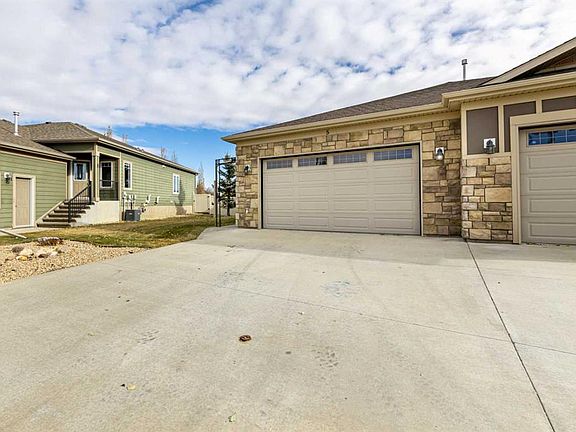 This beautifully maintained half duplex offers a bright, open layout and quality finishes throughout. The kitchen features a large island with eating bar, corner pantry, soft-close cabinetry, and plenty of storage, opening to the dining and living areas enhanced with power blinds for effortless comfort. From here—or directly from the primary bedroom—step out to the maintenance-free south-facing deck, perfect for morning coffee or evening relaxation. The front den includes a closet and can function as a guest bedroom or office, while the spacious primary suite offers a walk-in closet and an upgraded 5-piece ensuite with dual sinks and a senior-friendly walk-in tub. The main floor showcases engineered hardwood flooring, with main-floor laundry and an attached double garage adding convenience. Central air conditioning ensures year-round comfort. Downstairs, the basement features tile flooring, a large family room, guest bedroom, and 3-piece bath, plus a drywalled, taped, and mudded flex room ready for paint and flooring—ideal as an entertainment space, hobby area, or playroom for grandchildren. Located in a quiet, adult-living bare-land condominium community near Red Deer Regional Hospital, walking trails, and local shopping.