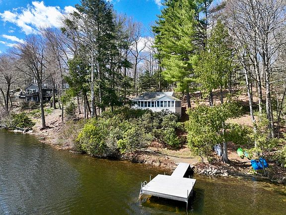 Set up on the bank of the West shore of beautiful Pine Island Lake In Westhampton is this rustic two bedroom seasonal waterfront cottage. Sip your morning coffee as you enjoy the breathtaking view of the sunrise as it rises above the mountain and over the lake. Fabulous family room/dining room combination with wrap around windows, remodeled kitchen, living room with stone fireplace and a 3/4 bath. Spend your days relaxing, fishing, and swimming off the well maintained, large dock.There is 150' of water frontage on close to an acre of land with plenty of parking. Wonderful goshen stone patio that is perfect for those evening summer campfires. Pine Island Lake is a private, quiet and peaceful lake with no public access and no gas motors allowed. A truly wonderful location, 90 minutes from Boston, 2.5 hours from NYC, 30 minutes to Amherst and just 15 minutes to downtown Northampton. OFFERS DUE TUESDAY, MAY 7, at 12 noon. Highest and Best, no escalations or letters.