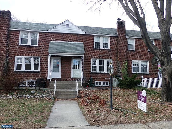 Stately Brick Townhome, Featuring 3 Bedrooms, Spacious Formal Living Room and Dining Room, Kitchen with Cherry raised panel cabinetry, stainless steel sink, electric range, dishwasher, refrigerator, Master bedroom has two closets, chair rail& ceiling fans in all bedrooms, Brand new full ceramic tile bath w/skylight, Living Room W/Gas Fireplace w/wood mantle, custom bookcases & cabinetry, dental molding, 6 inch baseboard trim work, Formal Dining Room W/door leading to deck, Freshly painted neutral interior, vinyl tilt windows, Hardwood Floors throughout, Flagstone patio, 1 car garage, walk out Basement w/laundry area, the home is conveniently located near Shops and the Speedline to Philadelphia