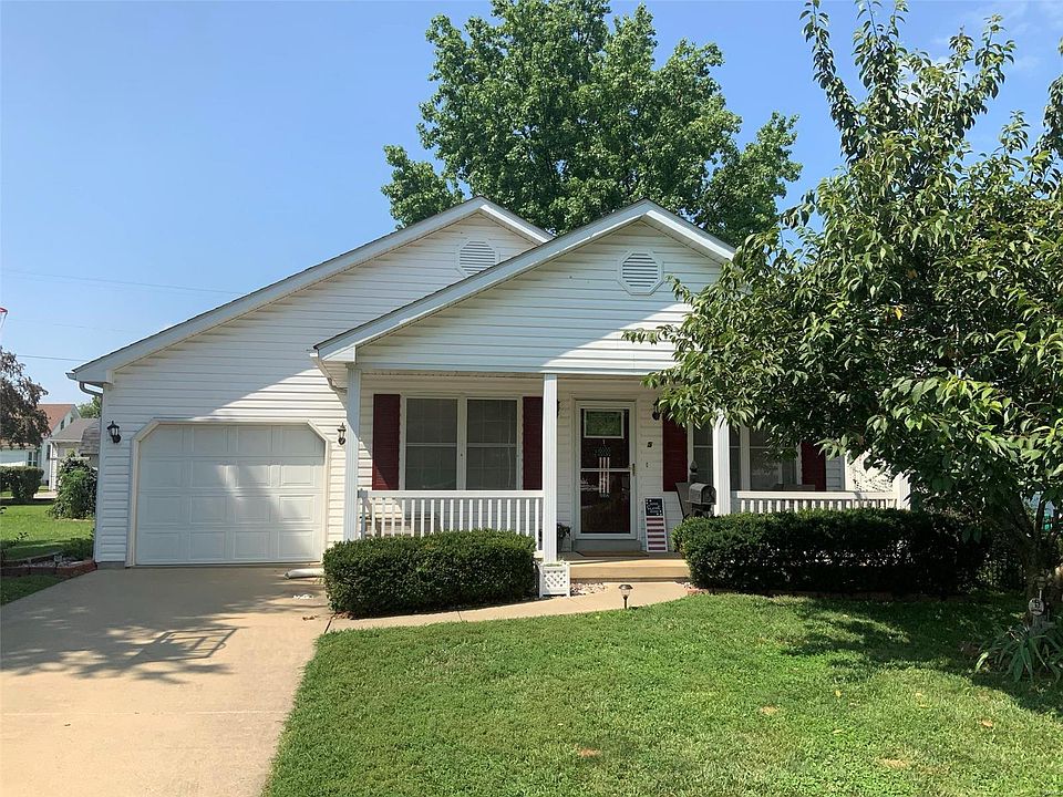 Location, Location, Location...this adorable 3 bed/2 bath home offers fantastic curb appeal and is located in heart of Millstadt, IL. Home features custom hardwood floors, attached one car garage with opener, detached garage w/ covered patio, & 4 seasons sunroom. Living room boasts vaulted ceiling & gas fireplace with open concept to dining room & kitchen. An abundance of counter & cabinet space & custom wood floors are highlights of kitchen. Refrigerator, stove/oven, microwave, dishwasher, disposal, washer & dryer included. Dining area boasts wonderful natural light and custom hard wood floors. Master suite has attached bathroom w/ oversized shower & access to sunroom. New water high efficiency water heater (2021). Roof new in 2020. Sellers love this home because of its convenient location, comfortable floor plan, & relaxing sunroom off the master suite. Detached one car garage with garage door opener and covered patio is accessible from the alley and/or parking lot of Breadaux Pizza.