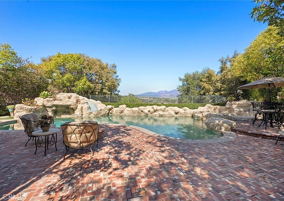 Set in the exquisite, guard gated Coto de Caza community sits this beautiful home within the prestigious Oak View tract. With over 5000 square feet of well-appointed living space, this magnificent masterpiece offers the perfect blend of luxury, serenity and comfort. Soaring ceilings greet you in the stunning entryway that sets the tone for this incredible property. The bright and sunny kitchen boasts stunning views, shaker cabinets, an over-sized center island and an abundance of cabinet and counter space. The kitchen flows seamlessly into the massive family room, with a beautiful fireplace and wrap-around garden windows that invite in the natural light. These rooms overlook the expansive entertainer's dream yard, with a custom brick wood burning fire-place, covered patio, and additional fire pit. The glistening pool boasts a gorgeous rock waterfall and slide, and a rejuvenating spa. Equipped with low-maintenance turf and elegant landscaping, this outdoor experience is perfect for hosting your family and friends. The formal dining area is perfectly placed adjacent to the chefs kitchen and opens to the formal living room, replete with its own elegant fireplace. The primary suite is your own private sanctuary, graciously appointed with plenty of room to take in the dramatic, unobstructed views of the mountains, which you can also enjoy from the extensive deck. The spa-like bathroom has a jacuzzi spa tub, a walk-in shower, dual vanity sinks and a spacious walk-in closet. Upstairs also includes 3 additional en-suites bedrooms. Two of the additional upstairs bedrooms are massive, with huge walk-in closets; one with its own built-in closet drawers and shelving and direct attic storage access, and the other with its own deck, overlooking the private oasis of a hill, where deer and other wildlife can often be seen roaming. The roomy additional main floor bedroom has its own private bath and walk-in closet, and the main floor executive office boasts beautiful cathedral ceilings and floor to ceiling windows that offer majestic views of the homes front tree and private hill. The home also provides a 3-car garage with above-rack shelving and a long driver that can easily fit up to 7 cars total. Additional highlights include: Recessed lighting throughout, stunning wood and travertine flooring throughout, separate laundry room, and fully owned solar panels. 4 Wandering River embodies the epitome of Southern California living at its best!