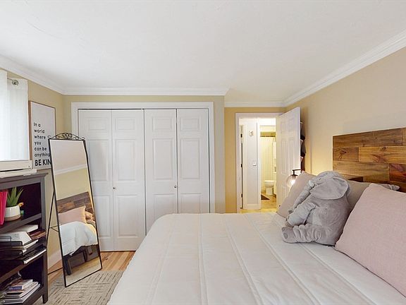 OFFERS DUE 3/17 at 10AM. Stunning first-floor corner unit offers 2 bedrooms in a professionally managed building. Step into the bright, sun-filled living room, complete with an open floor plan, crown molding, recessed lighting, and dimmable switches. The updated eat-in kitchen features granite countertops, under-cabinet lighting, GE appliances, a Bosch dishwasher, and a garbage disposal. Freshly painted with gleaming hardwood floors throughout, both bedrooms are spacious and provide ample closet space. The updated bathroom includes a tub and shower, along with a convenient linen closet. Enjoy the luxury of a brand new in-unit washer and dryer, plus an oversized storage room with an additional 181 sq. ft. of space. One deeded parking spot (#11) and plenty of guest parking are available. Heat and hot water included! Ideally located for commuters and walkers , with the Boston Express bus right outside, and easy access to Route 93, Route 60, Medford Square, and Haines Square’s restaurant.