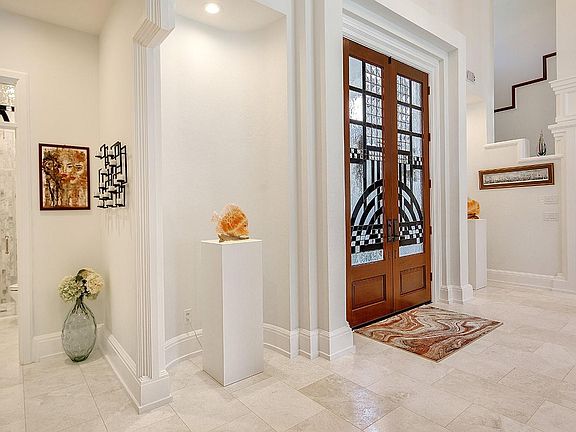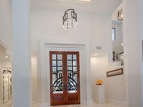 Gorgeous masonry stucco home sits on acre lot located on 4th hole of Palmer-Deacon Golf Course. Custom home fully refinished w/dramatic entrance w/10 foot cut glass double doors leading to large living room w/floor to ceiling fireplace, open concept island kitchen w/Thermador appliances, beautiful cabinetry w/eat-at-island. Upstairs highlights game room + exercise/flex room, two additional bedrooms with Jack & Jill bathrooms & balcony overlooking the pool. Primary bedroom has it's own large seating area w/fireplace, built-in TV, amazing bath w/large walk-in closet plus temp. controlled wine room, heated floors; office/library overlook pool/golf course. Spacious secondary bedroom downstairs w/private bath. Large entertainment area encompasses a beautiful yard w/outdoor kitchen, sparkling pool, water feature & covered patio surrounded by lush landscaping. 3 car garage w/Tesla charger built in garage. Built-in generator for back-up power supply. Complete home Control4 automation system.