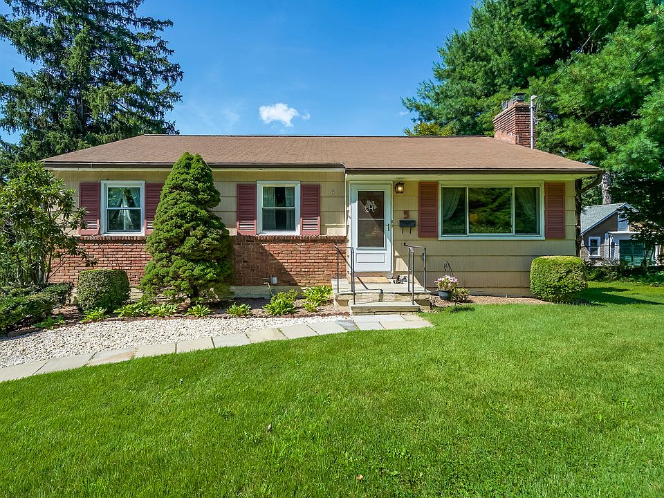 Lives bigger than the square footage! This ranch offers great flow with an open floor plan, new kitchen with quartz counters, solid wood cabinets, GE stainless steel appliances, mosaic backsplash and sliding glass doors to deck. The living room has a wood burning fireplace. There are two bedrooms, a full bath and Master Bedroom with an updated half bath. Walk-out basement offers additional space, plus pleasant laundry & one car garage with lots of storage. There is a spacious front and level backyard. All this & an easy walk to the Valhalla train station!