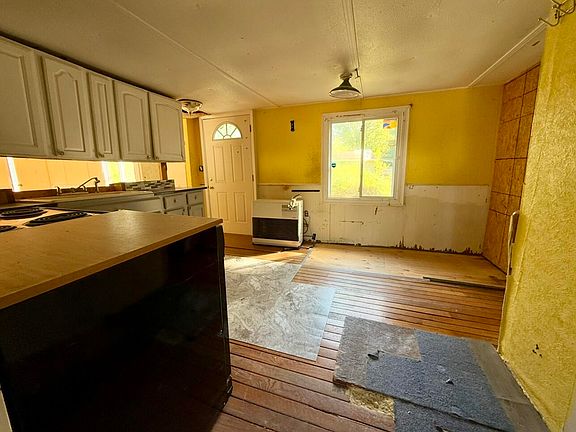 The mobile home is connected to public water and has a private 3-bedroom septic system. The shed/outbuilding will convey with the property.