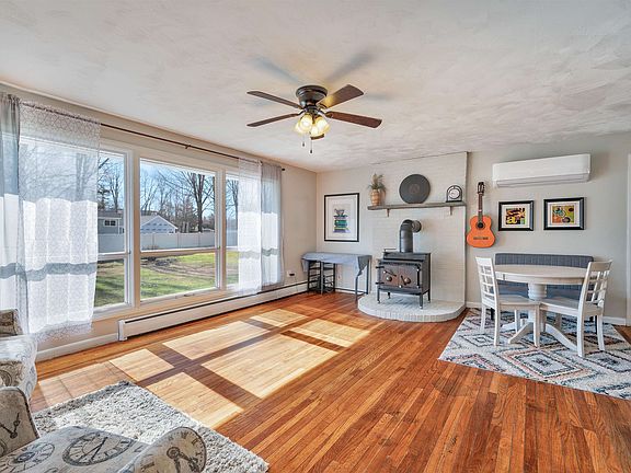 Charming mid-century ranch offering over 1,100 sq ft of single-level living plus additional bonus space! Set on a .33-acre lot with a fenced backyard perfect for enjoyment, entertaining and pets. Light and bright kitchen with white cabinets, open shelving & butcher block counters opens to the dining area. Sun-filled living room with a large picture window, hardwood floors, and a cozy wood-burning fireplace with brick hearth. Breezeway connecting the home and garage is perfect for a mudroom and also provides access to the backyard. Head down the hall to find 3 bedrooms plus a full bathroom. Full basement with the potential to finish the bonus room, plus a laundry area. 1+ car garage, with the option to remove the bonus space to regain a second bay. Mini splits for A/C and supplemental heat, Buderus boiler, town water and sewer, low-maintenance vinyl siding, many updated windows, and a portable generator hookup. Located in the Exeter School System with easy access to Downtown Exeter, Phillips Exeter Academy, shopping, dining, and NH beaches. About an hour to Boston or Portland, this home is a commuter’s dream just minutes to 101, 95, and the MA border. Showings begin at the Open House Thursday 4–6pm and this Saturday 4/26 from 11-1pm!
