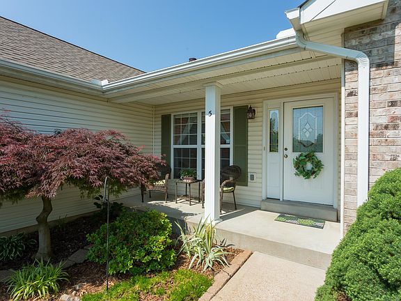 Privacy, serenity & sophistication define this home! Located on a cul-de-sac w/ views of Sugar Creek Golf Course's 14th hole, this 3 bed atrium ranch is a masterpiece! The professional landscaping creates an inviting first impression while the wide open floor plan w/ high vaulted ceilings offer a great space for entertaining. The main living area features hardwood floors, 3-sided gas fireplace, updated kitchen w/ granite counters, pantry, pendant lighting, an abundance of natural light & a climate-controlled sun rm...perfect for taking in views of the private, picturesque & functional backyard. Two tastefully decorated & comfortably sized bedrms, main floor laundry and a master bedrm suite showcasing vaulted ceilings, bay window, walk-in closet, his/her vanities, Jacuzzi tub & separate shower round out the main level. The partially finished walkout lower level adds a perfect amount of living space & plenty of storage. Deck, newer AC & a nearly 1/2 acre lot complete this beauty!