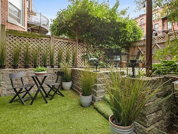 Stunning garden duplex with spectacular outdoor space and parking ! This renovated home features a private entryway with mud room , custom tiled foyer , two king sized bedroom suites on the upper level, marble baths, soaking tub, generous closet space and laundry room. The lower level is comprised of grand entertaining space , open living area with decorative fireplace, office nook, separate dining area , white and grey chef's kitchen with gas cooking and stainless appliances, modern half bath , and storage room . Wall of glass doors lead out to a beautifully landscaped, tiered patio and direct access , tandem parking for 2. Wellington St. Is an A+ South End location. Steps from the Southwest Corridor parks, the T, top rated restaurants , shops and Back Bay attractions. 5 Wellington St. is the ultimate city oasis OFFERING $2500 BONUS TO BUYER'S AGENT !