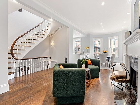 Spacious and elegant with a gorgeous roof-deck. This bright and sophisticated PH duplex on tree-lined Wellington Street, in the South End, has it all. A beautiful staircase leads you to the main level where you will find soaring ceilings, period detail, stained HW floors, wood burning fireplace and wonderful natural light. The open floor-plan allows for a perfect flow between living and dining. The open kitchen has stainless steel appliances and ample cabinets. Also on this level, a powder room, perfect for guests, and a small extension of the living room that could be used as an office space.The second level offers two very spacious bedrooms, each with its own en-suite renovated bathroom, and ample closet space.Other features include central AC, W&D in unit, a private roof-deck with sweeping city views and one deeded parking.A short distance to Titus Sparrow Park, Copley Place, Symphony and all that the South End has to offer, this home is lovely and inviting.