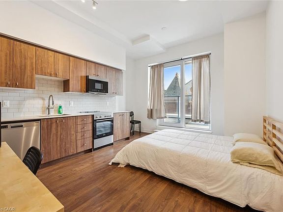 Nestled in the heart of Kitchener, this sleek and modern studio apartment offers the perfect blend of convenience, and comfort. Situated in the Station Park Union Towers, the unit boasts an open-concept layout with ample natural light pouring in. Residents enjoy access to a host of premium amenities, including a hydropool swim spa & hot tub, a two lane-bowling alley with resident lounge, pool table and foosball, outdoor BBQs, dog washing station, a fully equipped gym with Peloton studio, concierge services and more. With in-suite laundry facilities, bicycle storage, and parking available (at extra cost) every detail is thoughtfully designed for a seamless urban lifestyle. Located in a vibrant central area, this studio is mere steps away from the Google offices, hospitals, dining, shopping, entertainment, and public transportation, making it ideal for professionals, students, or anyone seeking the best of city living. Don't miss the opportunity to call this exceptional property your home!