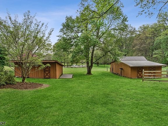 Charmingly finished in wood shingles, a farm-style Colonial on over four countryside acres is centrally located in Morris County's desirable Boonton Township. Entered by a newly paved, private driveway, open green spaces and a retreat-like atmosphere create a welcoming introduction. A tranquil pond with a fountain, lush lawns and specimen trees enhance the picturesque surroundings, while a fenced-in pool, upper terrace, two barns, and a woodshed are additional amenities. The flowing floor plan offers three bedrooms and two full and one-half baths. Highlights such as three fireplaces, hardwood floors, chestnut wood trim, a secondary staircase, recessed lights, neutral paint colors, generator hook-ups and an electric car charger are notable features. Character-filled gathering areas include living and dining rooms, and a spacious country kitchen featuring a butcher block island, maple cabinetry and stainless steel appliances. Adjoining the kitchen are a breakfast room, side porch and knotty pine paneled dry bar. The kitchen also opens into a family room fitted with a wet bar and fireplace. Overlooking the swimming pool and outdoor eating area, a sun-filled four-season room is designed with window walls and a skylight. Upstairs, a private primary suite is an inviting owners' retreat offering a fireplace and walk-in closet. Two secondary bedrooms share another full bath on this level. Natural light spills into the loft-like third-floor office overlooking peaceful views. Other outdoor amenities include four-board cedar fencing, an optional parking area, a walking/jogging path beyond the pond, and deer fencing. The two barns provide extra space parking for a sit-down tractor mower and lawn and patio furniture. Students from Boonton Township attend Mountain Lakes High School, one of the top high schools in the state. This home is close to parkland, recreation, shops, restaurants and a network of highways including Routes 80, 287 and 46 for commuters.