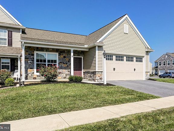 Immaculate ranch end-unit townhome on a large corner lot. Elegant 9 foot ceilings, engineered hardwood flooring & upgrades galore. Open & bright living room with crown molding. Grand kitchen with large island, granite countertops, tile backsplash & upgraded stainless steel appliances. Beautiful & trendy dining room with modern wainscoting accent wall & crown molding. Bright sunroom with gas fireplace, vaulted ceilings & access to the rear concrete patio. Master bedroom suite with private master bath and 13 x 7 walk-in closet. Laundry/mudroom from garage entrance with additional storage cabinets. Large 2 car garage with attic access for additional storage. Gas forced air heat & central air with Nest programmable thermostat. Enjoy carefree living with the condo association covering lawn care, snow removal & exterior maintenance (roof costs are half covered by HOA and half by home owner). Access to walking trail. Make this incredible house your home today!