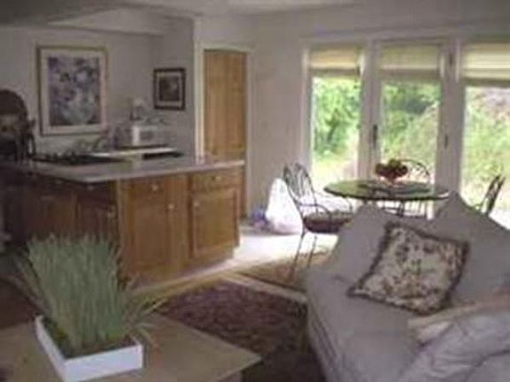 Enjoy this charming end unit attached to a sprawling ranch situated on a picturesque lot. Combination kitchen area and spacious living room has sliders that open to a deck and wooded area. The bedroom also has sliders to backyard area. Hardwood floors. Very light and comfortable apartment with air conditioning. Heat and electricity are included in the monthly rental fee.Your own private driveway for four cars. Some storage available. Unit is available for long term rental. Great location, accessible to all major highways and amenities. Move right in to this sunny unit with new window treatments and new stainless steel refrigerator! Cats are welcome!