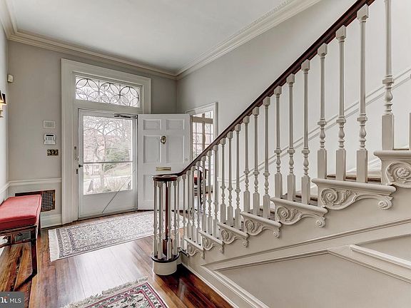 Elegant all brick 7 Bedroom, 5/1 Bath Georgian home on 3 finished levels. Center Hall with gracious low-rise staircase, formal Living Room & formal Dining Room- both with Georgian fireplace walls & French doors to Sun Room. Large cherry Kitchen with breakfast area & Butler's Pantry. Master Bedroom with Bath, 2 additional Bedrooms with Shared Bath, Library/Bedroom with built-ins & fireplace plus Dressing Room with 2 walk-in closets & Bath on the 2nd Level. 3rd Floor with 3 Bedrooms, Bath, walk-in cedar closet & walk-in storage closet. Tiered bluestone Patios in fenced back yard with pond, breezeway connecting to Garage, professionally landscaped. Central AC on 2nd & 3rd levels & Kitchen- cool air flows down to other main level rooms comfortably. New Carrier unit ordered to replace 2nd floor/kitchen system.