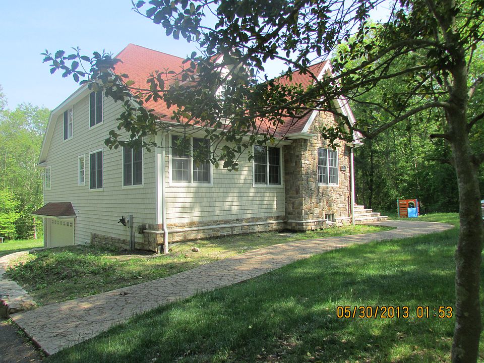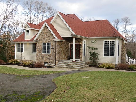 Stunning custom built contemporary situated on a secluded and private approx. 9 acre lot. Open floor plan with remarkable kitchen granite, Brazilian walnut hardwood flooring, and interior trim features. First floor master suite with custom walk in closet and spa-like bathroom. Finished basement perfect for hosting with bar and sliding door to in-ground pool patio. Elevated deck overlooks pool patio and is equipped with stone and lighting... Perfect for summer nights!!