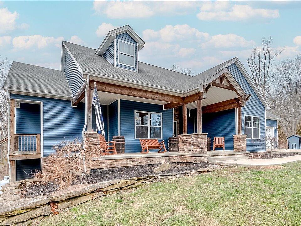 Welcome to your dream home nestled in a secluded park like setting in a clean and green community! The highlight of this beautiful home is its location. 4 miles from interstate 64, within 30 minutes of Louisville or Lexington if you so desire. Frankfort and Lawrenceburg are only 10 minutes away. This beautiful hobby farm sits along the famous Bourbon Trail featuring black plank fencing around 2 areas for your animals along with a leanto shed, custom chicken coop, separate dog run from the side door, custom storage area, oversized 2 car garage, foam insulation, 3 bedrooms, two baths and views of wildlife from the front and back covered porches. If location, privacy, quietness, but close to town is what you're looking for, this is the dream home for you!