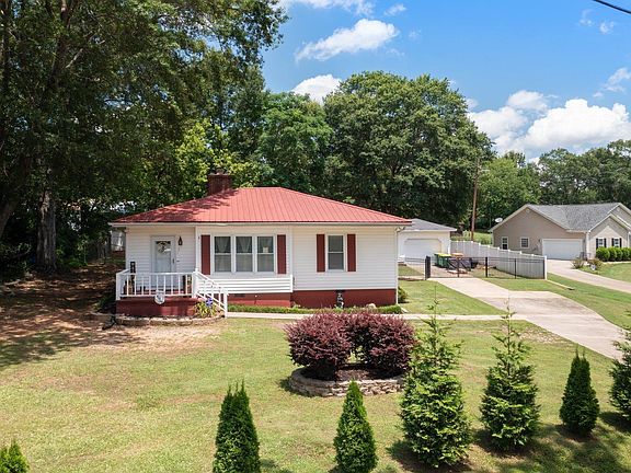 Adorable white bungalow with red metal roof! Located in highly sought after Taylors with easy access to Wade Hampton Blvd, shopping, schools and everywhere you need to be. The .40 acre lot has NO RESTRICTIONS and is fully fenced. You can have a yard full of chickens, if you so choose! The current owners completely renovated the kitchen and added new hardwood floors throughout many of the common areas. The wood-burning fireplace is the heart of the great room and it opens to the dining room. Both bathrooms have been updated and the master ensuite bath features a stunning walk-in, tiled shower. The 2 secondary bedrooms are great sized and have the original hardwood floors. The enclosed porch looks out over a private backyard and detached one-car garage. The windows were replaced in 2013 and the metal roof was installed in 2014. Get your appointments made today!
