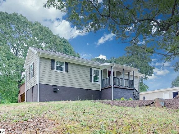 COZY, NEWLY-RENOVATED BUNGALOW is eleven minutes from Downtown Greenville. In 2018 this home was taken down to the stubs and brought back to life with a new architectural roof, hardie board siding, a new deck, and a renovated 3 car detached garage. The spacious garage was also plumbed for a kitchen and bathroom. Also, an addition was added to the house, converting the home to a 3 bedroom, 2 bath home. The inside of the house features a renovated, white cabinet kitchen with granite countertops, new bathrooms, new electrical work, new plumbing and new paint and sheet rock. Permits were pulled for this project. Beautiful hardwood floors in all living areas and ceramic tile in both bathrooms compliment the updated look. The private, gently sloping lot is framed with large, older trees. Items in garage do not convey with property.