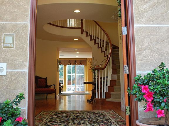 Grand open foyer with 19' ceilings connects to formal living and dining rooms.