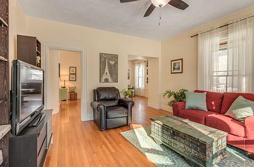 Nestled in a wonderful neighborhood of large older homes and only 1/2 mile to all that Stoneham Center has to offer, sits this Sun Filled Charming Colonial just waiting for its next new owners. The 9ft ceilings and large windows along with the built-ins, original wood trim and tons of storage are sure to please you! Level one offers an OPEN Concept Living Room, Dining Room and Kitchen, along with a 1st Floor Bedroom and Full Bath. The enclosed 3 season Sunroom adds additional space for relaxing in the warmer months. The second floor boasts two lovely bedrooms with walk-in closets and a second full bathroom with laundry. The one car garage, driveway parking for 4 cars, fenced yard, and the 6 Year Young Renovations of the Roof, Heating System, Kitchen, Baths and 200 Amp Electrical Service will make you want to make this great home your own.