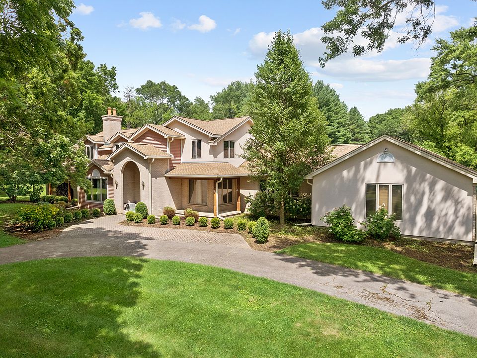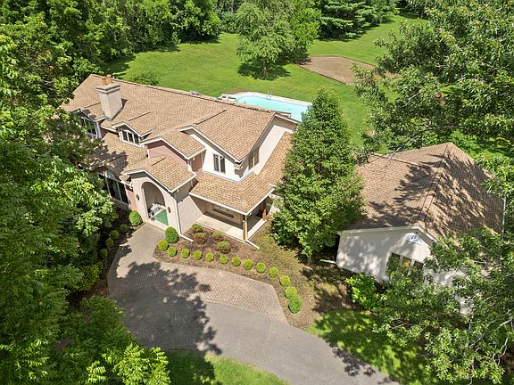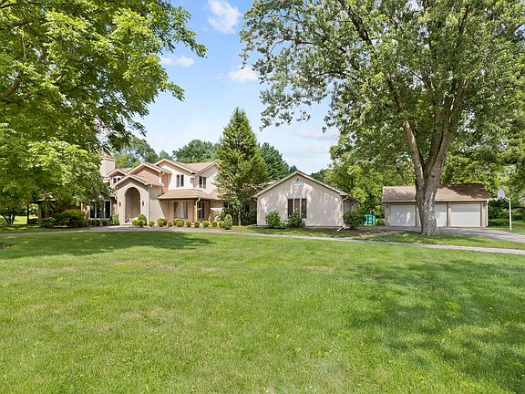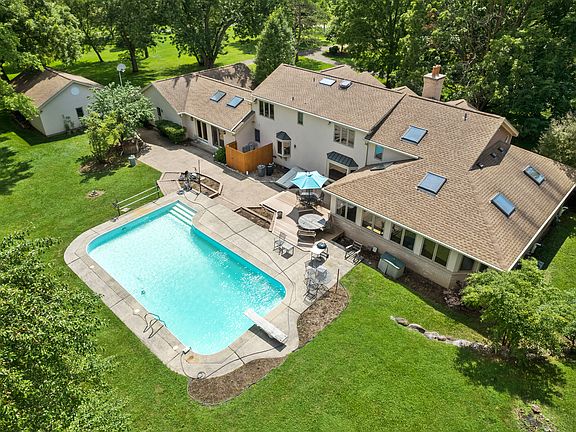 Welcome to your very own sprawling estate! On a beautiful 5.62 acre lot, this 5-bedroom home boasts 6,186 sq ft of living area, perfectly designed for comfort and entertainment. Horses welcome and charming mini barn awaits the equestrian. Enjoy sunny days by the in-ground pool with diving board, perfect for entertaining family and friends. 5 garage spaces for all your cars and/or toys. 4 spacious ensuite bedrooms are located upstairs offering an ideal blend of privacy and convenience. The main level includes a fifth bedroom, a dedicated office, and two half baths. The heart of the home is an updated kitchen (1991) that flows seamlessly into the eat-in area, highlighted by a bay window. Features include Corian countertops, a veggie sink and a Sub-Zero fridge, making this a very functional space. The inviting living room features beamed ceilings, built in bookshelves and a cozy wood-burning fireplace with a gas starter, providing the perfect ambiance for gatherings or just relaxing. The expansive spa area, completed in 2012, includes a sauna, hot tub, and steam shower, offering a luxurious retreat within your home. Additional highlights include hardwood and parquet floors, recessed lighting, and a game room equipped with a pool table (included in the sale). The generous rec and bonus rooms feature vaulted ceilings, beams, skylights, and an abundance of windows, flooding the space with natural light. A mud room that can double as a second kitchen, a conveniently located laundry room on the main level, and a grand entryway with tile with wood inlay further enhance the home's functionality. Updates include: 3 Zone HVAC - new 2024. New Water Softener with Reverse Osmosis 2022. Roof, gutters & guards 2019. New Generator & Redug Septic 2018. Many additional updates.