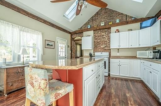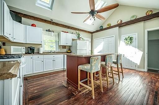 Prepare to fall in love! Meet your dream kitchen; lots of cabinet space, large island, vaulted ceilings with skylights and the beautiful brick wall create a bright and cheery setting. Light dances off of gleaming wood floors throughout the entire home, which includes a large living area, additional family room, formal dining room, and a unique sunken master suite. The charming features of an antique home remain and shine through with many updates. Outside, the corner lot has lovely stone walls, a meticulously manicured landscape, and a fabulous front porch to enjoy during the warmer months. There is plenty of space in the 2 car garage as well. You and this home are a perfect match, so don't wait to meet it in person!