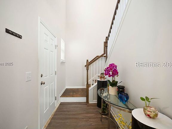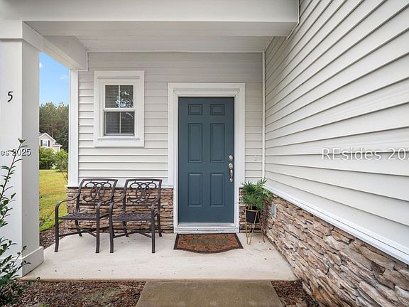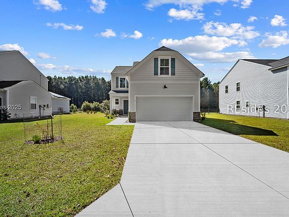 Welcome to this stunning dream home in Bluffton, featuring the beautifully designed Beaufort floor plan. Built in 2022 and offering 2,065 square feet of living space, this residence includes three bedrooms, three full bathrooms, and a versatile main-level room that can serve as an additional bedroom, office, or cozy den. This thoughtful layout combines modern elegance with everyday functionality, creating a home designed for both comfort and style! Upon entry head on up the elegant wood staircase with open rail pickets to the second level, which leads to the impressive owner's suite, complete with a spacious closet and a spa-inspired ensuite bathroom featuring a soaking tub and separate shower. Two additional generously sized bedrooms, a full bath, and a convenient laundry room complete the second story. Head back down to the main level and enter the light and bright great are with gorgeously spacious gourmet kitchen, offering 42-inch soft-close white cabinets, quartz countertops, a farmhouse sink, and a central island. The open-concept design flows seamlessly into the spacious living area, where a cozy electric fireplace creates a welcoming atmosphere. Next, head out back where a screened-in lanai provides year-round outdoor enjoyment with serene lagoon views, perfect for relaxing with morning coffee or evening gatherings. The exterior of the home is equally impressive, featuring an extended driveway with space for up to four vehicles, stacked stone and shaker-style accents for exceptional curb appeal, and assumable leased solar panels for energy efficiency. Ideally located in one of Bluffton's most desirable areas, this home offers convenient access to shopping, dining, grocery stores, hospitals, and schools. It is also just a short drive to the pristine sandy beaches of Hilton Head Island or the historic charm of downtown Savannah. This beautifully upgraded home is move-in ready and offers the perfect blend of luxury, comfort, and convenience.