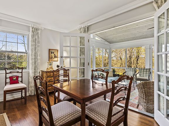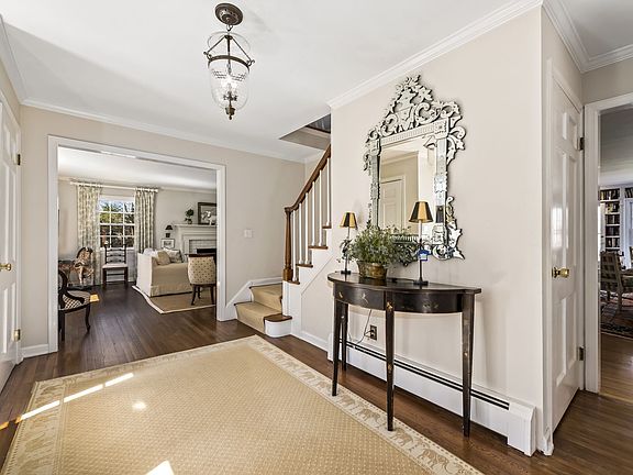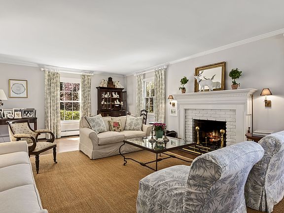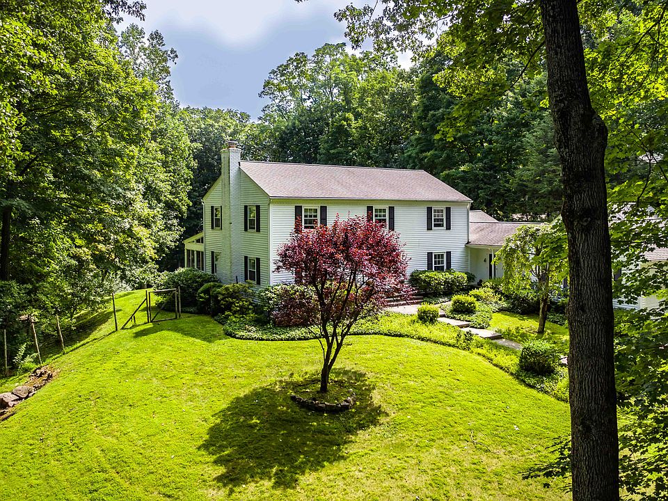 Gracious Lawrence Farms East Colonial, privately set on 2.87 acres that extend down to Taylor Road. This home has been expanded and renovated to maximize an easy, updated flow that is perfect for entertaining, both inside and out. Woodland Road is a short cul-de-sac. This Colonial sits up where its views are unobstructed. The fifth bedroom, with full bath, is on the first floor. The expanded family room features a large, custom fireplace, built-ins, a back wall of windows, plus doors opening to a screened porch and another set of doors that lead to the patio. The renovated kitchen has a cathedral ceiling, allowing for a palladium window, plus there is an interesting horizontal window that is just above counter level. The breakfast room is large with glass doors that open to an oversized patio. There is a storage room over the attached garage, the basement houses the oil tanks and is unfinished.